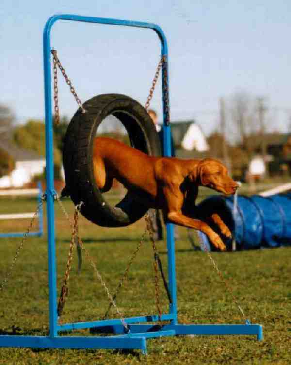 Photo: Spud enjoying the tyre in an agility event