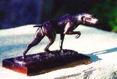 Image: John Butler in Australia does beautiful Bronze Vizslas and apparently has also done some wonderful Vizsla paintings. If anyone in interested in a painting or bronze and wants more information they may email him. Handlers must also have some skills. These include Emergency Responder with CPR for the professional, Haz-Mat responder, radio communications, map and compass, basic knots and hasty harness, man tracking, search strategy, human osteology, crime scene awareness, terminology, and report writing. The Vizsla AKC (American Kennel Club) Breed Standard reads "A natural hunter endowed with a good nose and above-average ability to take training". I've been involved with Vizsla for nearly 20 years, and after much thought, decided to use a Vizsla for this scent specific work. Generally, the working, sporting, and herding breeds do best at this. But, not many Vizslas are involved. I think the reason for that is simply that they aren't as popular, generally. Certainly it is not that they aren't capable. So, I very carefully chose a puppy (took a year), tested for aptitude at 49 days, and started a new dog. I exposed her to scent right away (8 weeks). But, in those beginning months we spent the majority of the time learning obedience, agility, and general exposure to all sorts of situations. Every day we did something new. One day would be to ride an elevator. The next, walk past workers using a jackhammer. We visited the convalescent home and met people in wheelchairs, with walkers and canes. We played with children (including going down the slide and climbing up the ladders with them), walked through crowds, sat at outside cafes and left people alone (a real obedience test for a V). All this while also learning general things like to quietly stay in the car, ride, play with other dogs. Sounds like overload, but we were having so much fun! Every day a new adventure. Training is ALWAYS fun. I'm a clicker trainer, as are many others. The whole learning process is done with operant conditioning and my dogs all think it's the best game in town. Sure beats lying around home waiting until someone says, "walk". The term "working dog" is for humans – the dogs would probably call themselves "recreationally engaged". And we handlers feel just as excited as our partners do. It is such a blast to watch your best friend do something well and look up and smile (they do grin, you know). The scent work is taught with much care to help them learn to search (cover an area) and then tell you they have found something (alert). They have to be able to work with independence while also taking direction. Since they are hunters, Vizslas take well to the basics. It's very much like hide and seek – except they are only looking for scent. Scent specific canines are proofed throughout their working careers to ignore any scent but decomposed human. They will not show us deceased animal, fresh live human scent, etc. The canines are always rewarded for their efforts, and they are willing to work diligently to find the scent source so they will get that reward. There is always a big playtime upon completion of an exercise. Don't be deceived into thinking "working dogs" are not full-fledged family members. These dogs do not live in kennels and only accompany the handler when working. They belong to the handler, live in the home, and in every way are the pampered pet. The difference is, we play a unique game that is designated a "job". I spend from 80 – 100 hours a month training, travelling to new areas to train, and keeping current on handler skills. Upon passing certification, we are required to continue to train and recertify annually with our partners. I can only say that I'm grateful to be able to do this work with my favorite breed. We have a play/work relationship that I wouldn't trade. The Vizsla sense of humor combined with intense work focus makes them outstanding partners.