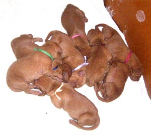 Day 4 I put their ribbons on (had been using nail polish to distinguish pups apart up until then). |