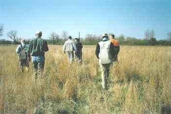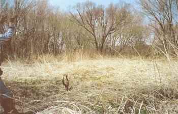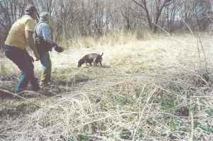Near the end of the first run a bird planter would put out 2 Bobwhite quail and mark the spot with a bright tag. This was for the dogs to find and point. The judges knew the dogs would not treat the birds like wild game and this didn’t come into it, the birds were used for the sole purpose of seeing if the dog would point, and later to track a running pheasant.
