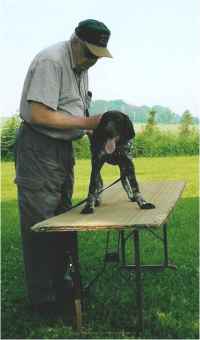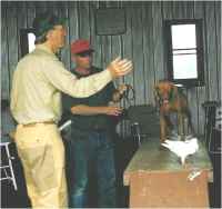 This was an historical meeting where the two founders of NAVHDA and writers of the "green book", Dr Edward Bailey and Bodo Winterhelt gave a talk on early NAVHDA, the original aims of the association and how they had changed, and the original aims of the training booklet.Ed and Bodo had not been together for many years, and though the number attending the clinic was disappointingly small, (around 20) still during the weekend old time trainers and breeders would drop in to say hi to these two "special" men.Ed Bailey is a Professor and animal behaviourist at the University of Guelph and has been involved with hunting dogs and training of same for over 50 years. Bodo Winterhelt , a German export met Ed over 30 years ago and together they devised a testing situation for Canadian dogs based closely on the German system of testing. Apparently choosing a suitable name for the group took some thought, but finally they decided on the North American Versatile Hunting Dog Association so that the USA would be included in the tests. Now of course, the USA has pretty well taken control of the club.