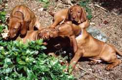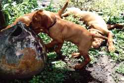 The challenges should start easy and simple and become more difficult and complex. What challenging "think” situations you present to the pups will depend on what problems the dog will be expected to face during the rest of his life and on your own inventive genius. An example of a problem every dog must face, and hopefully solve, many time in his life is that the best route from point A to point B is not necessarily a straight line - say retrieving a bird that fell on the far side of a wire fence with four or five strands of barbed wire on top when there is a gate opening 50 yards to the left. The dog that was challenged with detour problems, also known as “Umweg” problems (literally “around road” problems), as a pup will have the smarts to size up the situation and make the detour, and save a lot of money in vet bills by not needing to have the wire cuts stitched up.