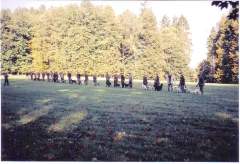 *****After all the entries were correctly accounted for in the Laptop, everyone gathered in a field, with the Castle Konopiste as a backdrop, for the traditional blowing of the hunting horns to begin the trials. The entries consisted of 12 Cesky Fousek, 4 Mad’arsky ohar (Vizsla), 1 Vymarsky ohar kratkosrsty (Weim ), 1 Bretansky ohar (Brittany), 6 Anglicky Setr, 1 Irsky Setr, 4 Gordon Setr, and 4 Pointers.