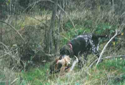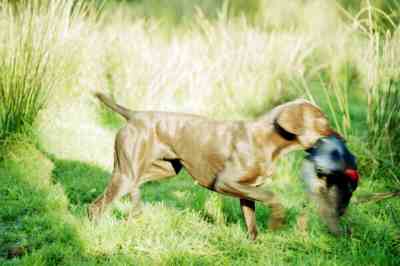 GSP Shayde retrieving pukeko ( NZ) - Photo from Rose Gilbert