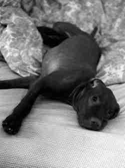 A B&W picture of Opus One's Madkap Scout (Scout) when he was a young pup.